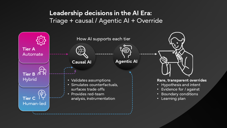 Leaders need a repeatable way to decide whether a call should be data‑led, human‑led or hybrid. One practical approach is a three‑tier triage.