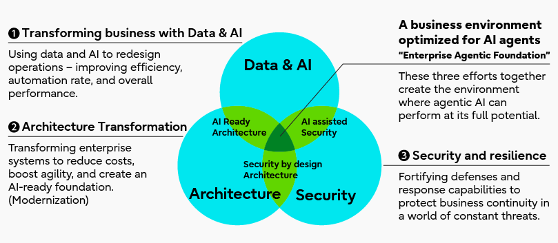 Individual applications should autonomously interact based on specific events, enabling end-to-end processing across systems. Human roles will shift from direct “operation” to “verification and approval” of AI-executed tasks. As a result, AI agents can drive processes quickly and efficiently without delays, making organizations more resilient and adaptable.